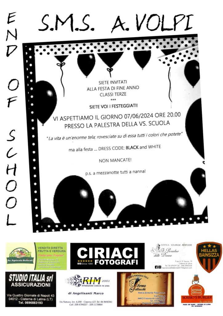 7 GIUGNO 2024 – FESTA DI FINE ANNO PER GLI ALUNNI DELLE CLASSI TERZE