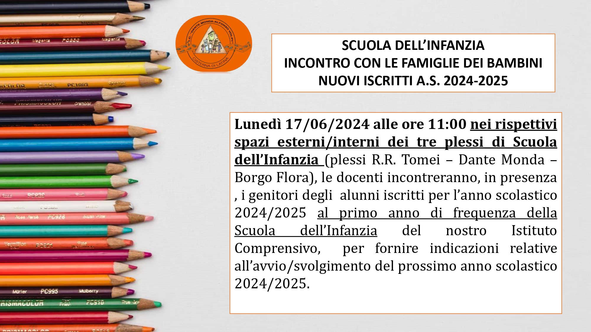 SCUOLA DELL’INFANZIA – INCONTRO CON LE FAMIGLIE DEI BAMBINI NEOISCRITTI