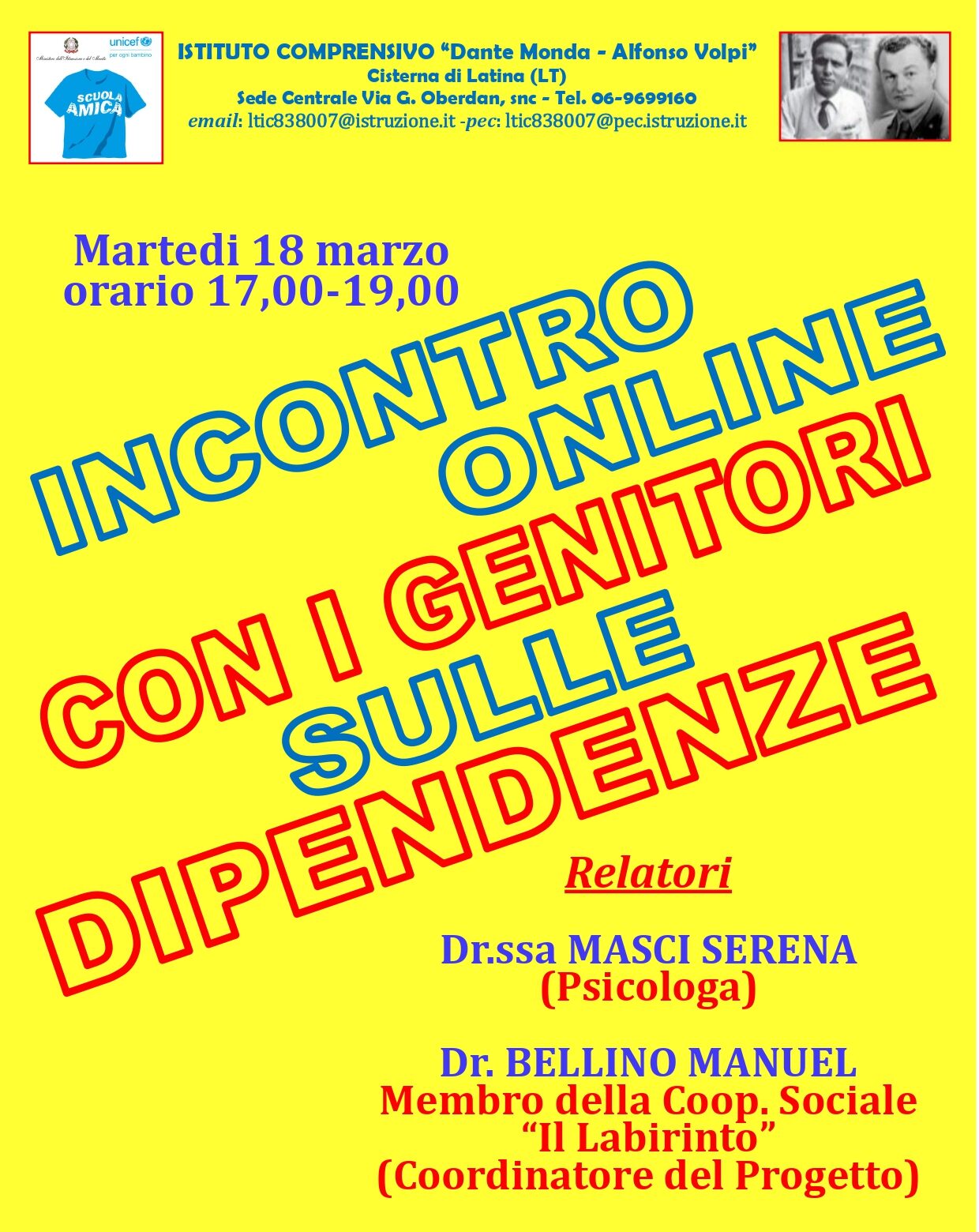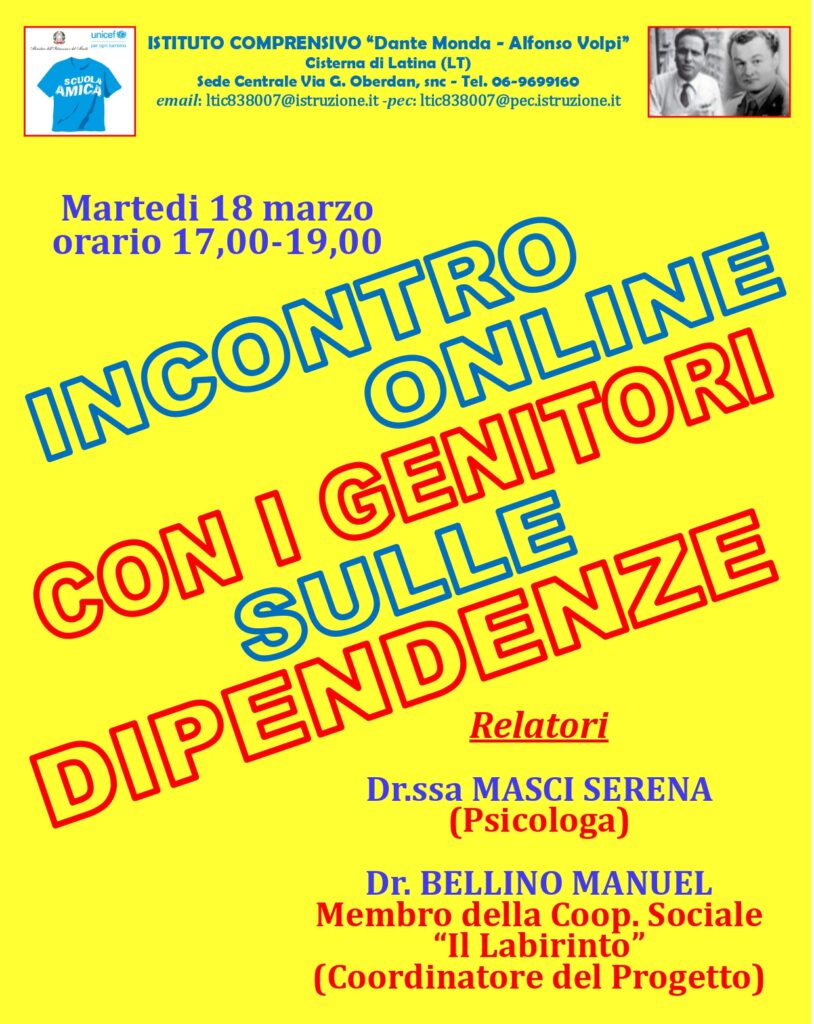 INCONTRO DI FORMAZIONE PER I GENITORI: PREVENIRE E CONTRASTARE LE DIPENDENZE