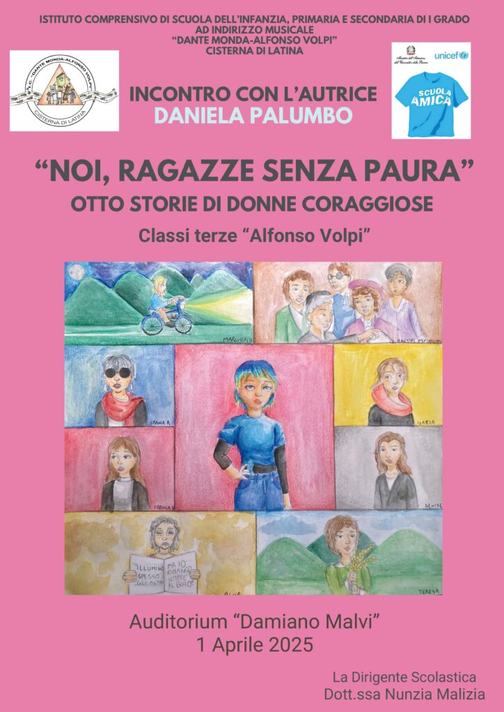 Il 1 aprile 2025 le classi terze della Scuola secondaria di I grado “A. Volpi” incontreranno la scrittrice Daniela Palumbo e l’attrice Diana Manea per il progetto “Incontro con l’autore” in collaborazione con la Libreria Anacleto.