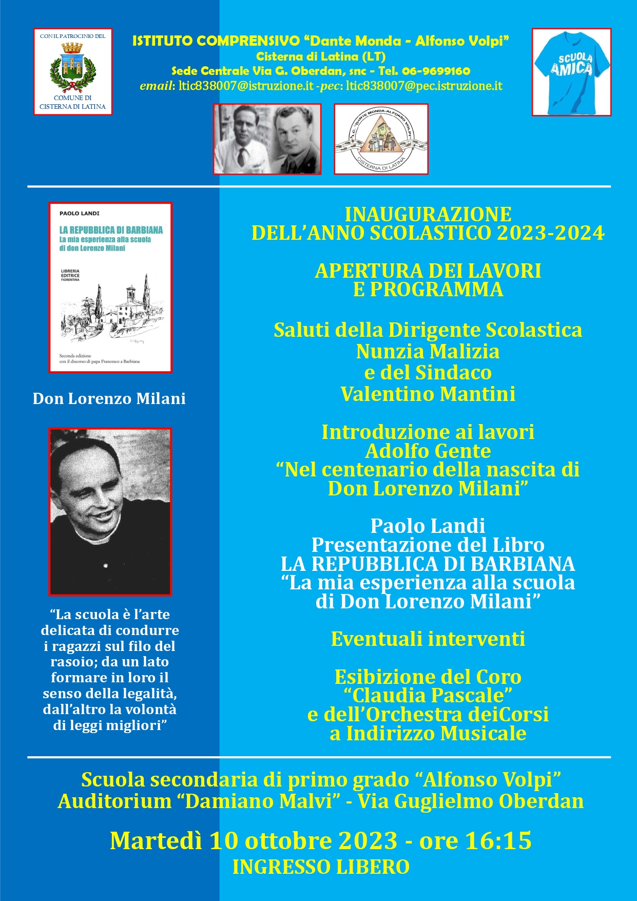 10 OTTOBRE 2023 – INAUGURAZIONE ANNO SCOLASTICO 2023-24